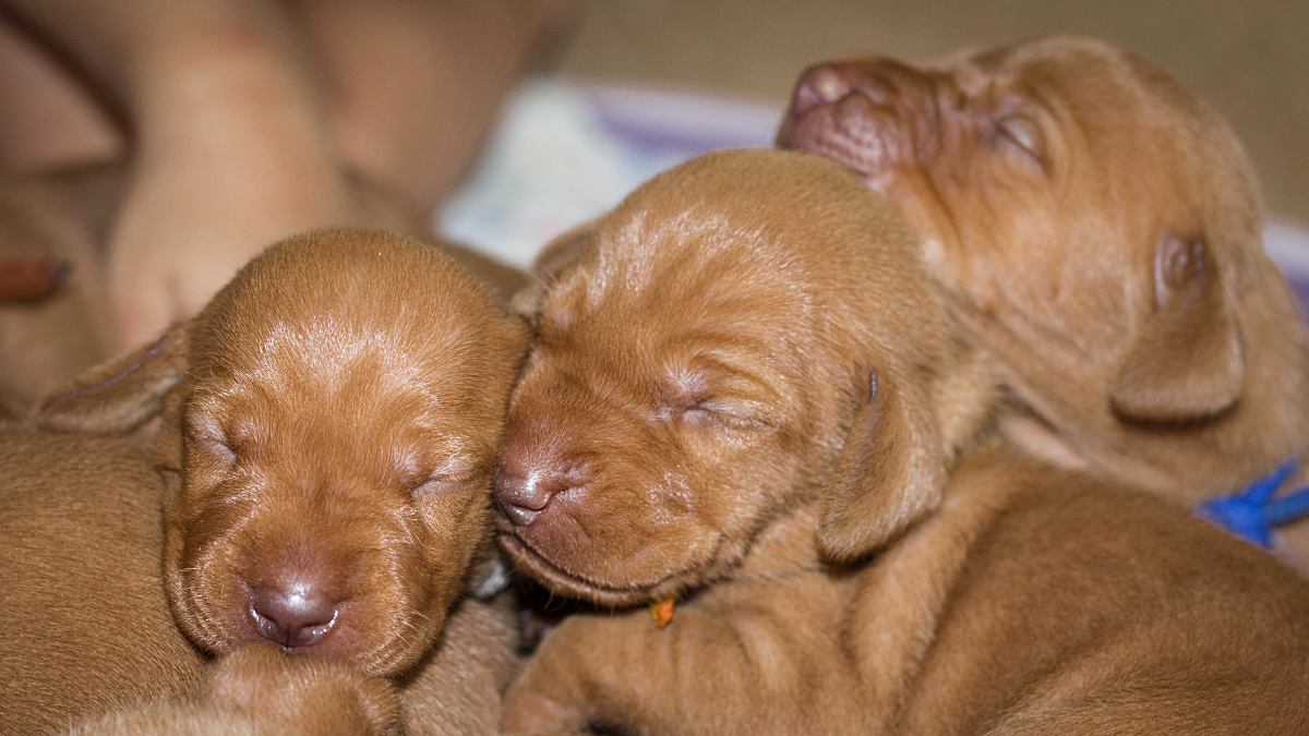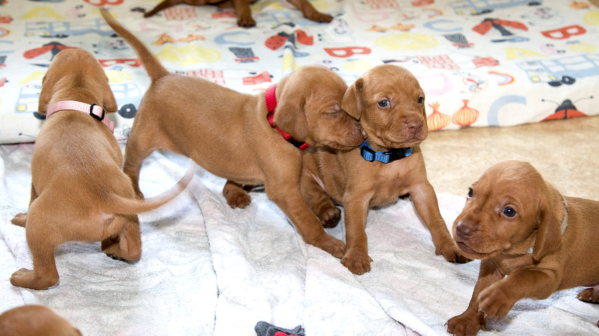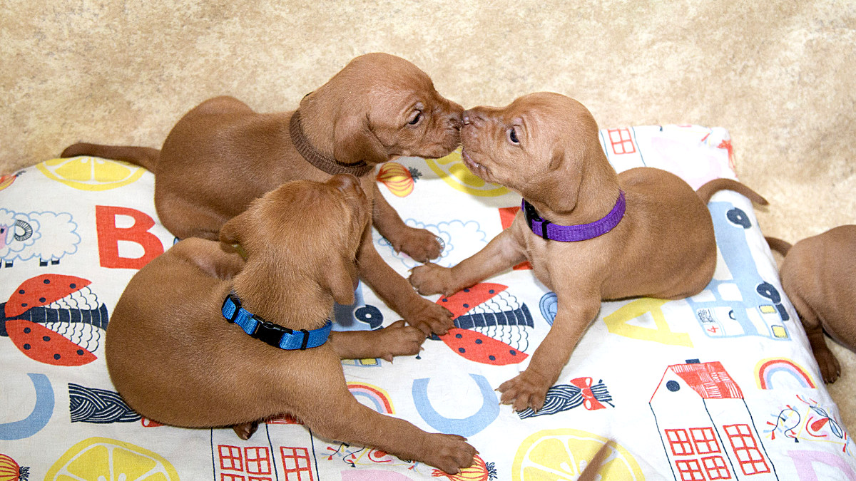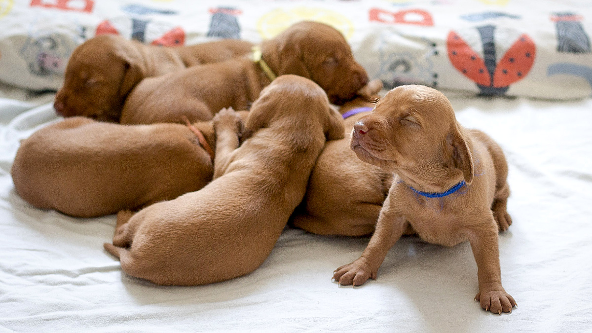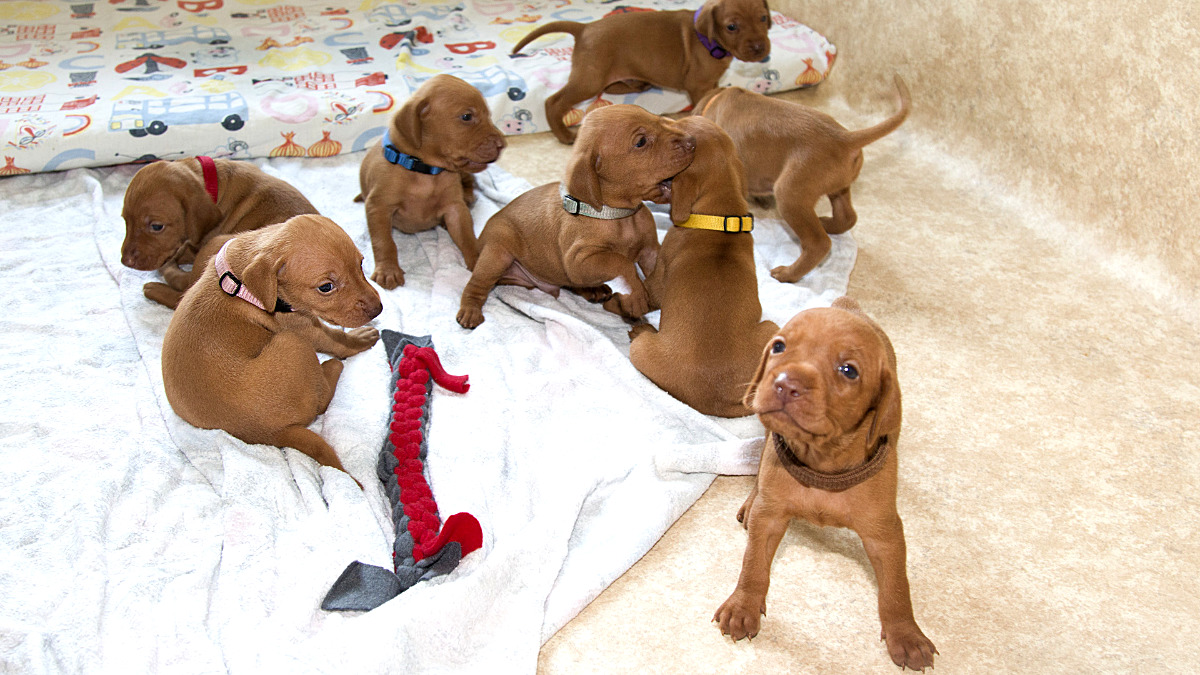 8 štěňátek v poměru 5 holčiček a 3 kluci.