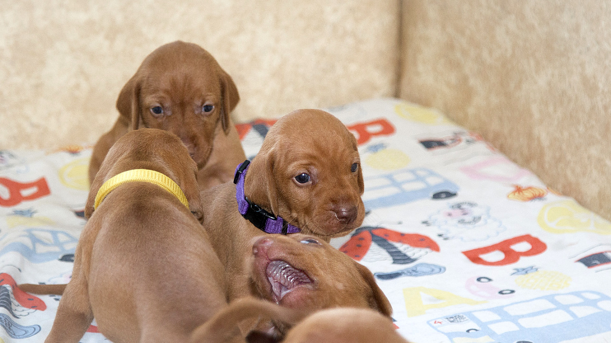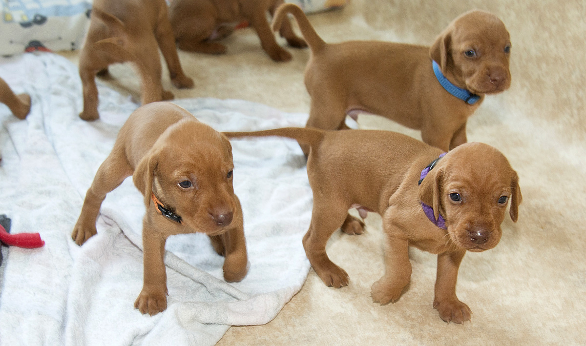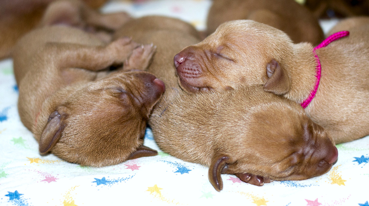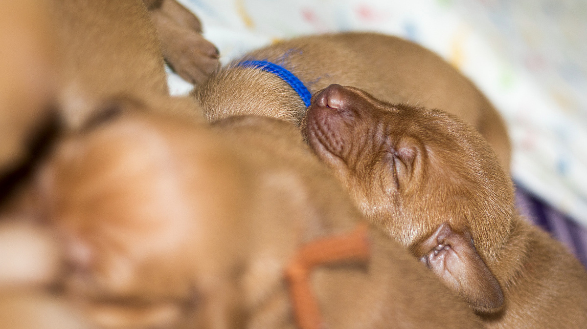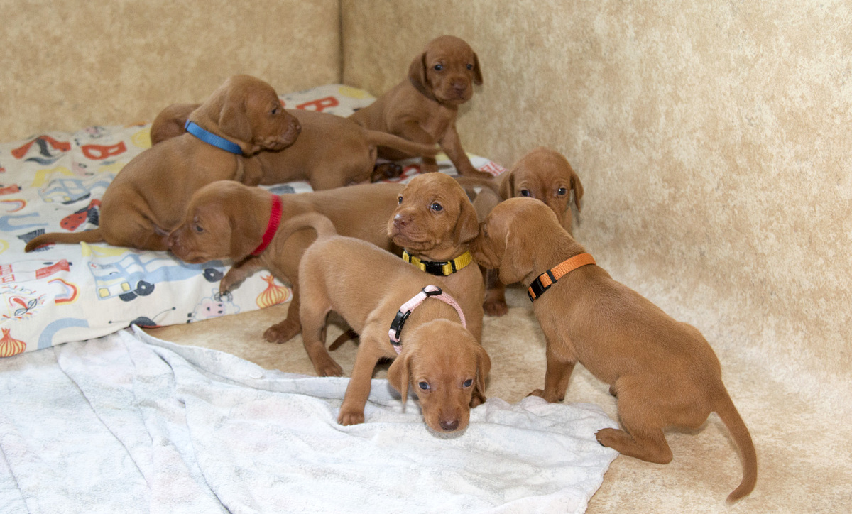 8 štěňátek v poměru 5 holčiček a 3 kluci.