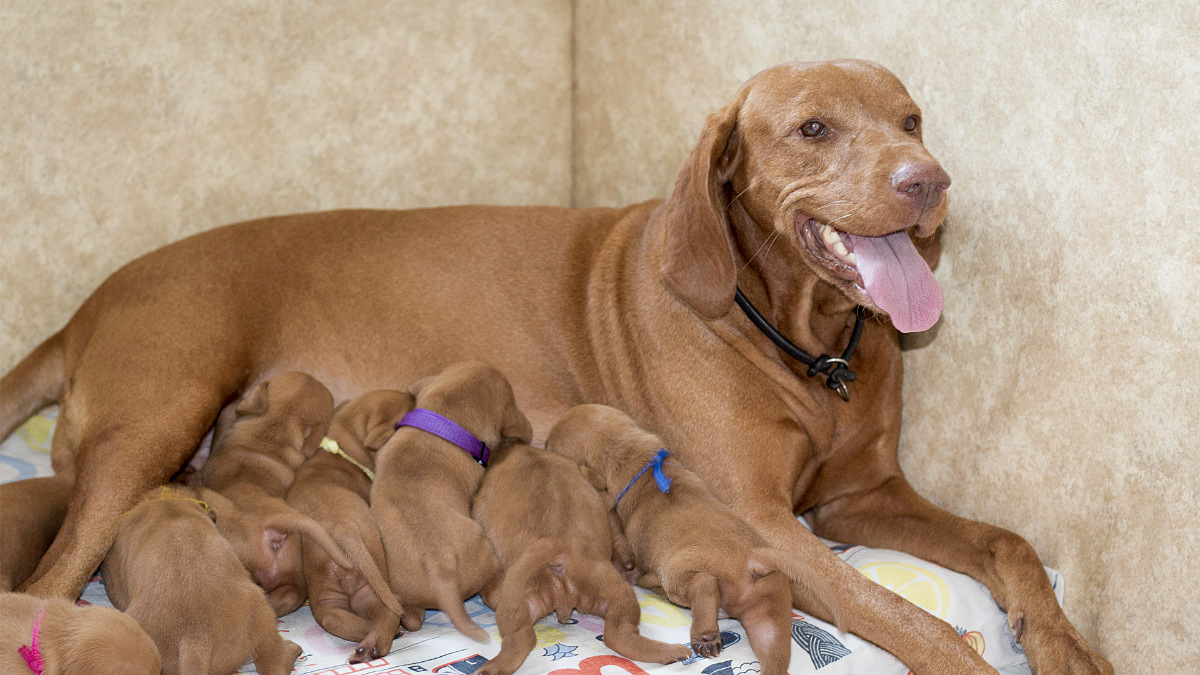 Na veterinární kontrole bylo vše v pořádku, miminka i maminka jsou v pořádku.